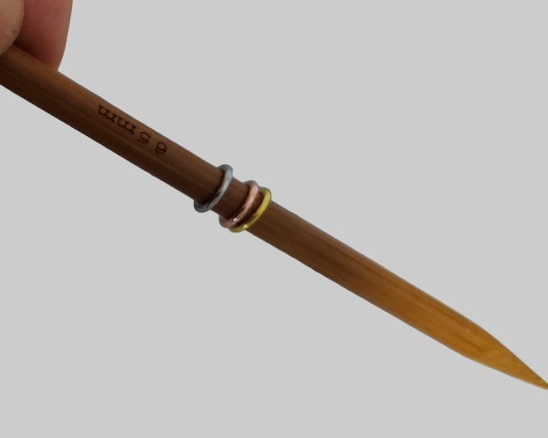 30 metal stitch markers in a zip-lock pack; they fit on needles up to 6.5 mm